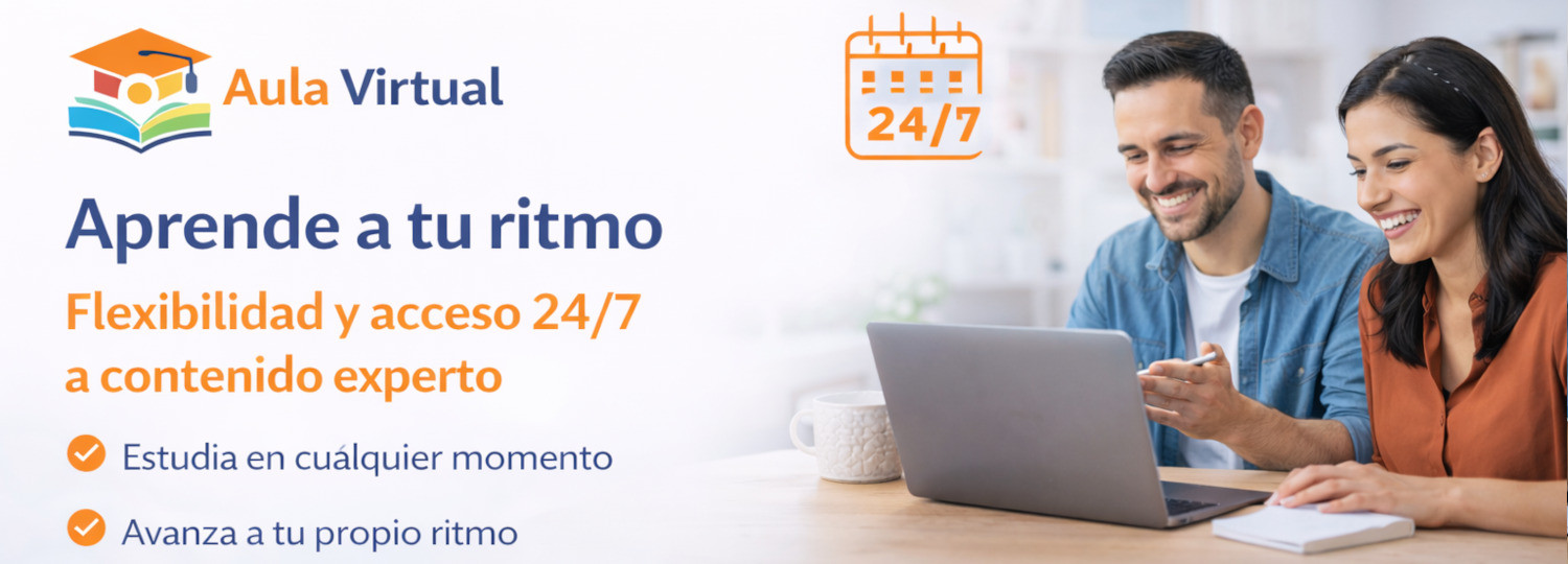 Accede a cursos 100% online, disponibles 24/7. Organiza tu tiempo y avanza desde cualquier dispositivo, sin restricciones geográficas.